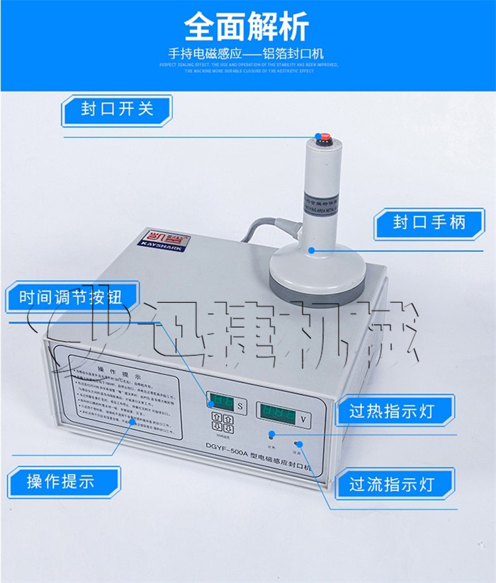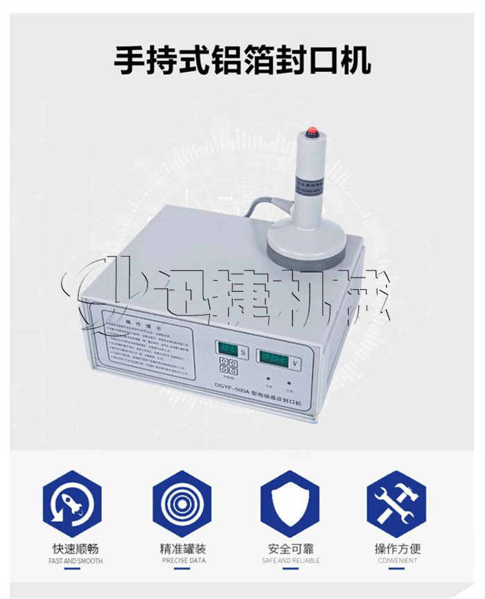 該該封口機為手持式鋁箔封口機,是一種便攜式電磁感應(yīng)加熱封口設(shè)備,專為制藥、化工、農(nóng)藥、食品、化妝品、輕工行業(yè)對容器進行鋁箔嚴密封口,封口材質(zhì)使用廣泛。